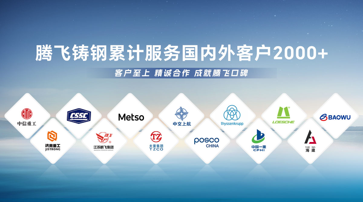 騰飛鑄鋼成立于2006年,位于全國鑄造基地河南省新鄉市,擁有員工300余人,是一家從事150噸以下碳鋼、低合金鋼、不銹鋼鑄鋼件研發、制造、服務為一體的國家高新技術企業。  公司通過了ISO9001國際質量管理體系認證,擁有2項發明專 利,2項河南省科技成果、25項實用新型技術,通過了“環保績效評級B級企業”驗收,先后榮獲“河南省鑄造行業綠色發展企業”、 “河南省科技型中小企業”、“河南省專精特新中小企業”等榮譽稱號?! 」緭碛?臺25噸電爐,4臺大型天燃氣熱處理爐、10米回旋自動拋丸機一臺, φ8m數控立車、φ10m數控滾齒機等各類高精裝備100余臺套,年產能3萬余噸,能為客戶提供從產品設計、木模加工、大型鑄造、大型加工一站式服務,產品廣泛應用于建材、冶金、鍛壓、冶金、水工、路橋、化工等多個重型行業?! ¢L期服務于中信重工、中船重工、美卓、上海中交、萊歇、寶武、濟南重工等全球知名企業,在行業內擁有較高的市場知名度和美譽度。